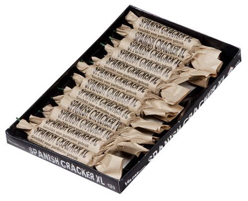 Twaalf stuks typisch Spaanse crackers in een doos. Vurige knallers die exploderen met een vleugje Spaanse flair!